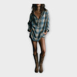 Риза рокля с лежерна елегантност съчетава комфорт и безупречен стил за всекидневието и по-изисканите поводи.
