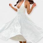 Елегантна миди рокля с открит гръб и корсетен дизайн подчертава женствеността във всеки детайл.