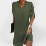 Елегантна рокля с ласкателна линия е нашата любима небрежна рокля с V-образно деколте — съвършен съюз на комфорт, елегантност и вечен стил, създадена за жените, които искат да се чувстват красиви и свободни през целия ден.