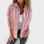 Удобната качулка добавя топлина и защита от вятъра, правейки го идеален избор за студени дни и променливото време.